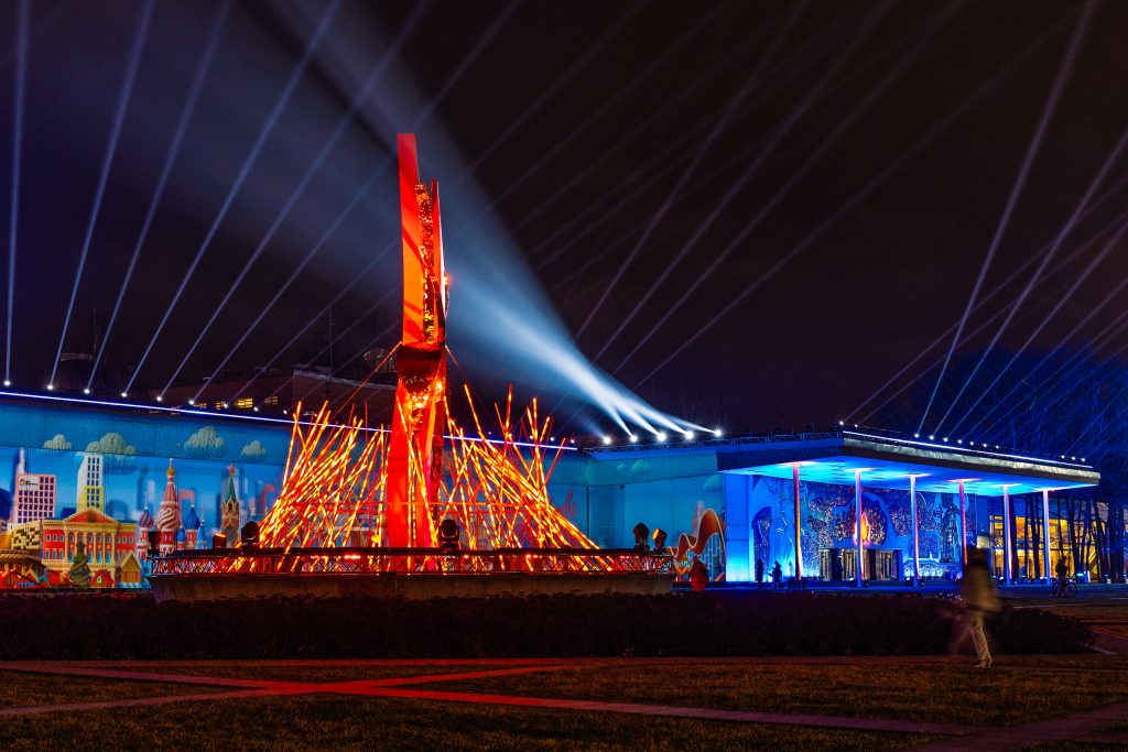 Каждый день гостей площадки ждет завораживающее световое шоу, которое подарит атмосферу праздника и яркие впечатления. В центре площадки по-новому «зажжётся» и легендарный костёр. Теперь эта инсталляция, выполненная в художественном стиле, станет частью световой постановки, соединяя историю Дворца пионеров с современной городской культурой. А в парковой зоне гости смогут увидеть северное сияние и встретить животных, которые будто появляются среди деревьев и кустов.